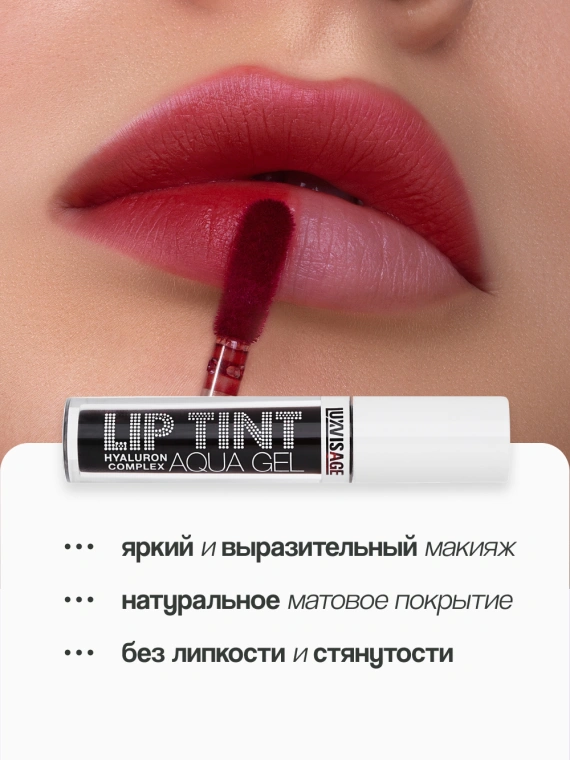 Тинт для губ `LUXVISAGE` LIP TINT AQUA GEL HYALURON COMPLEX с гиалуроновым комплексом тон 05 Wine Red