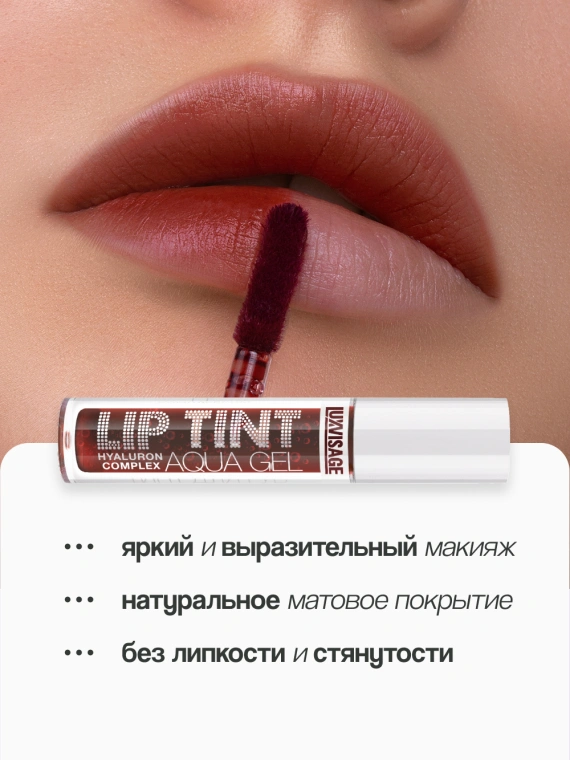 Тинт для губ `LUXVISAGE` LIP TINT AQUA GEL HYALURON COMPLEX с гиалуроновым комплексом тон 05 Wine Red