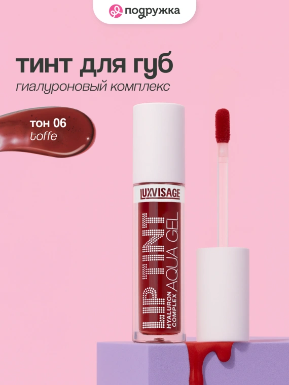 Тинт для губ `LUXVISAGE` LIP TINT AQUA GEL HYALURON COMPLEX с гиалуроновым комплексом тон 06 Toffe