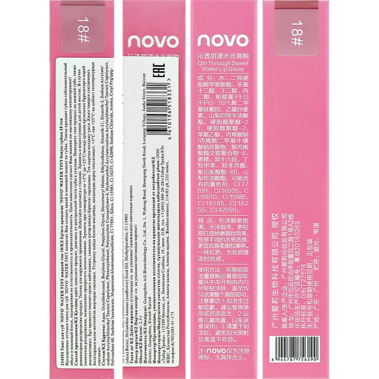 Тинт для губ `NOVO` WATER TINT жидкий тон 18