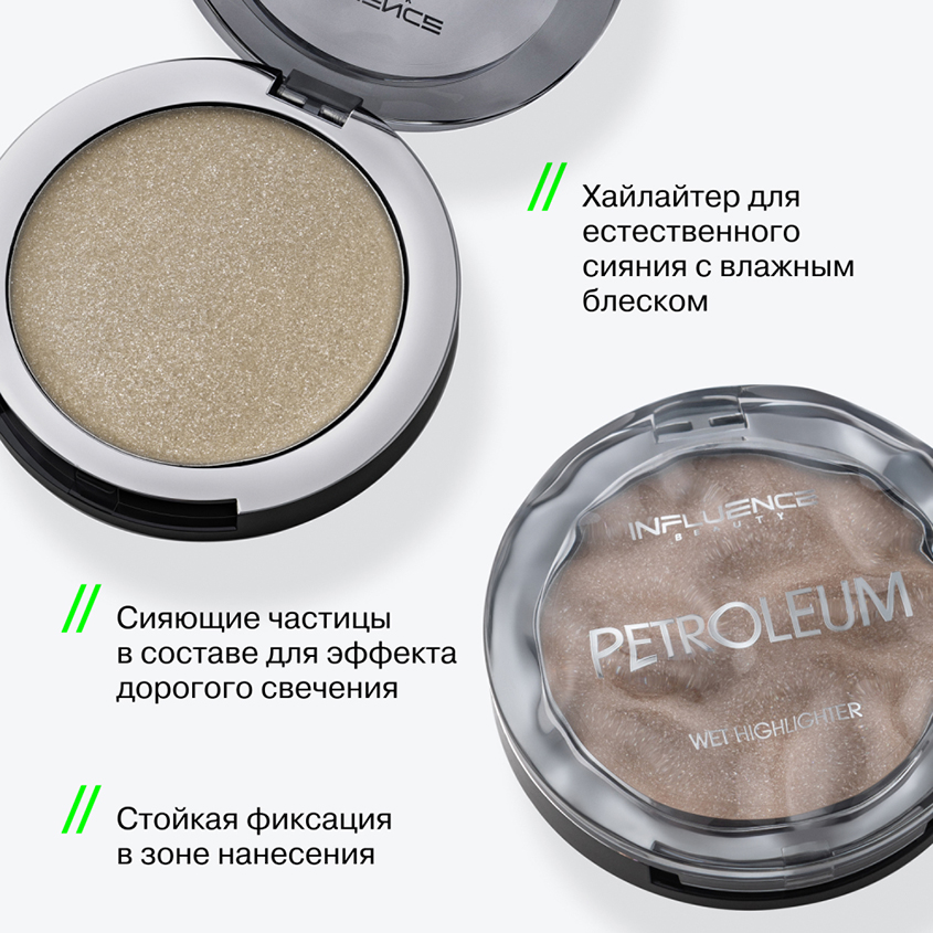 Хайлайтер для лица `INFLUENCE BEAUTY` PETROLEUM влажный тон 01