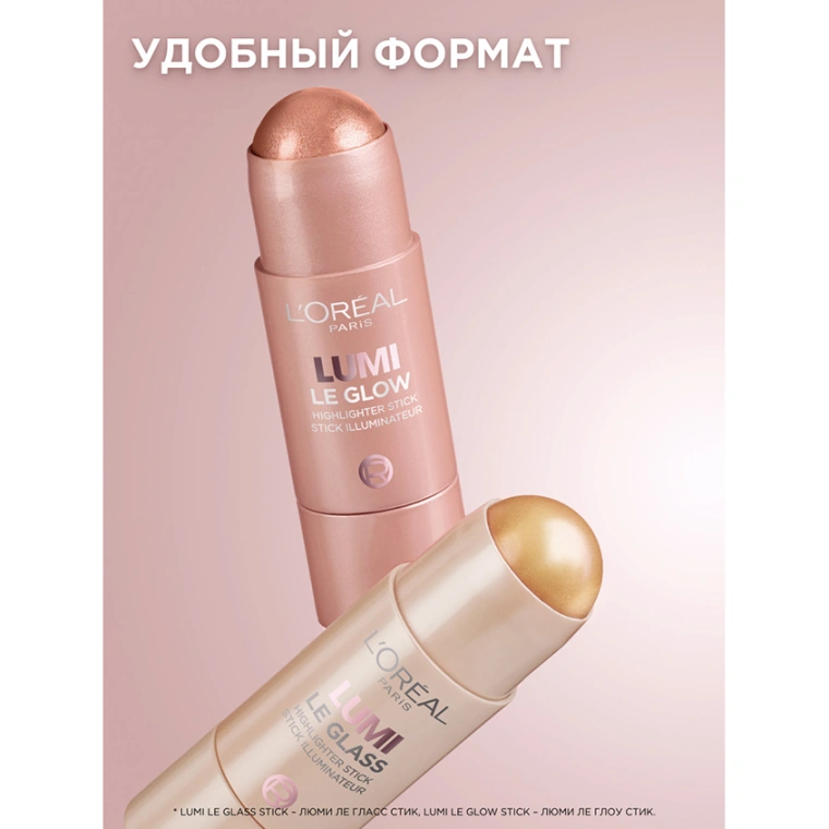 Хайлайтер-стик `LOREAL` LUMI Le Glow для сияния кожи тон 630 Glowy creme chic