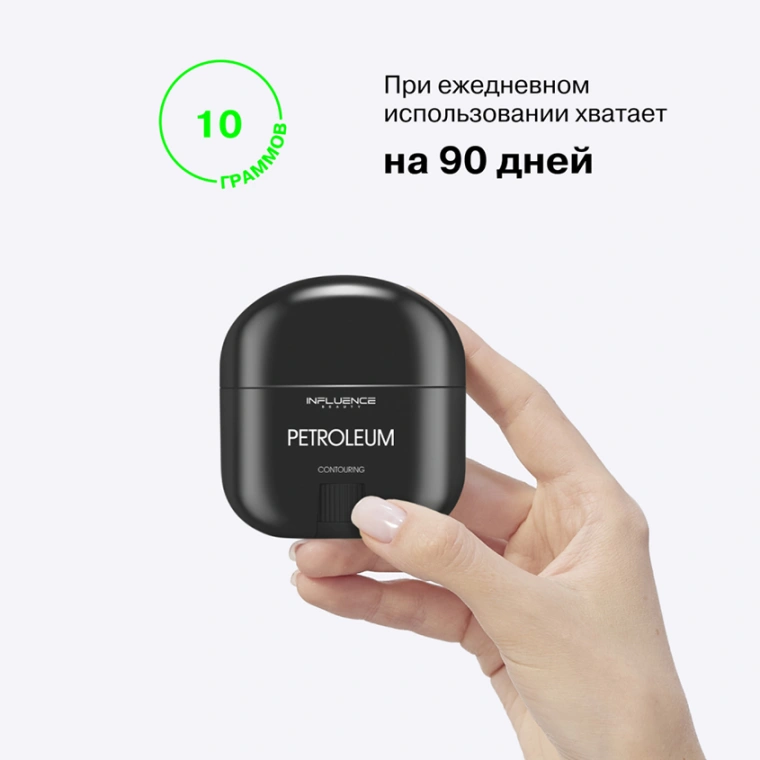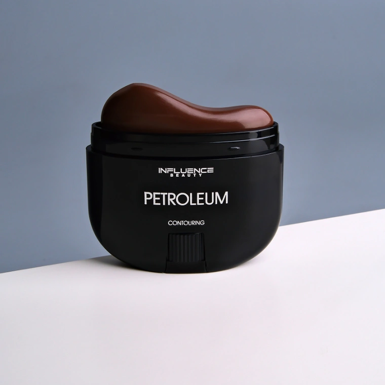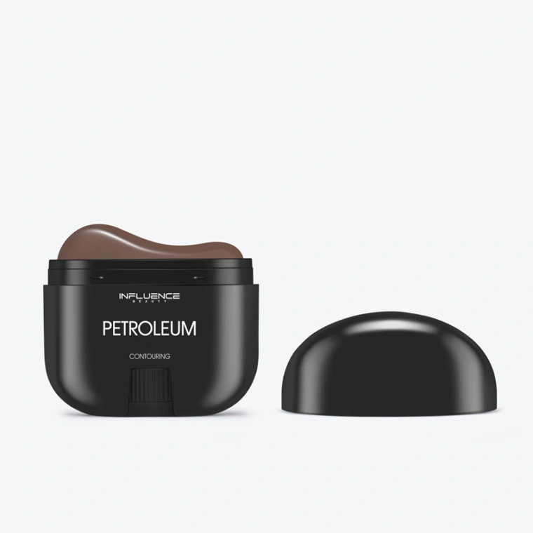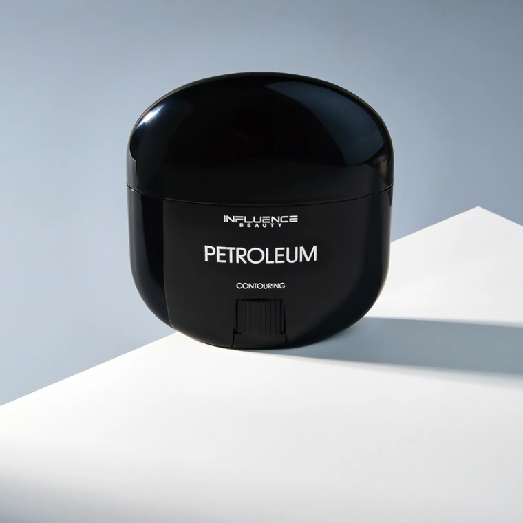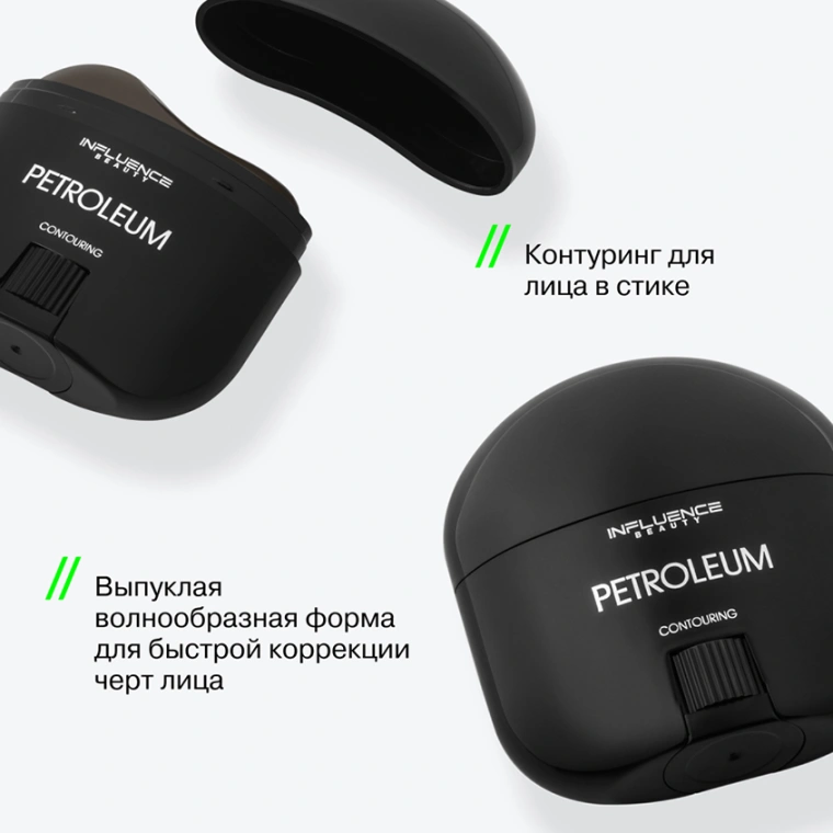 Контуринг PETROLEUM от INFLUENCE BEAUTY — продукт оригинальной волнообразной формы, которая облегчает создание макияжа: просто приложите контуринг по направлению от кончика уха до уголка губ, и он сам сделает всю работу за вас, правильно расположив цвет.