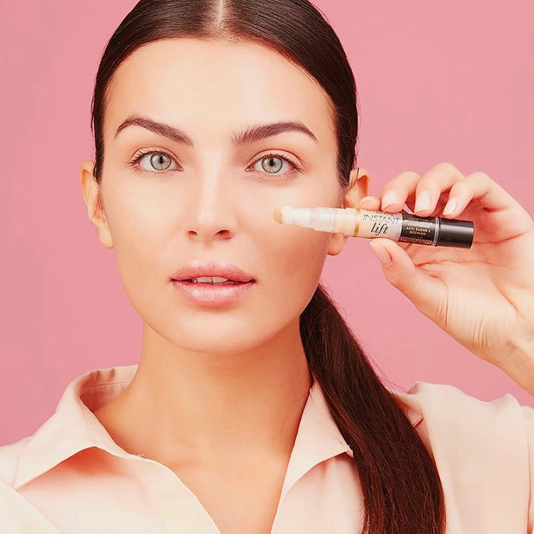 Нанесите консилер на зону вокруг глаз и растушуйте подушечками пальцев/ спонжем/ косметической