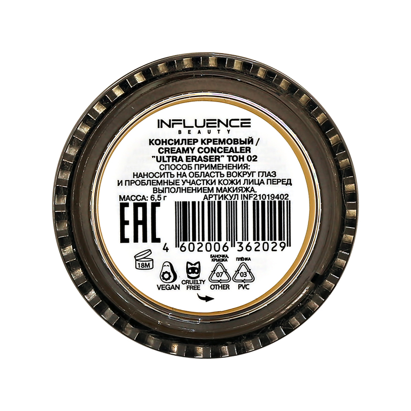 Консилер для лица `INFLUENCE BEAUTY` ULTRA ERASER кремовый тон 02 Medium