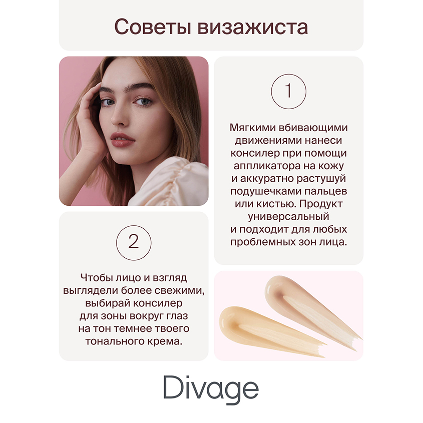 Консилер для лица `DIVAGE` TRUE COLOR универсальный тон 02W Розово-бежевый