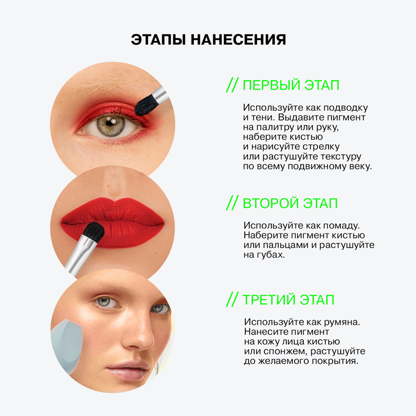 Воплощение творчества и экспериментов в мире косметики — мультифункциональные цветные пигменты TECHNICOLOR от INFLUENCE BEAUTY. В коллекции есть шесть матовых и два шиммерных оттенка: от базовых бежево-коричневых тонов до яркого красного, фиолетового и глубокого синего цвета. Кремовые пигменты со стойкой формулой быстро фиксируются и остаются насыщенными длительное время. Благодаря технологии TECHNICOLOR они легко смешиваются между собой, хорошо растушевываются и наносятся на кожу лица, веки и губы. Этот универсальный продукт заменит сразу несколько средств в косметичке: его можно использовать как жидкие тени для век, подводку, помаду, кремовые румяна, контуринг и хайлайтер. Смешивайте несколько пигментов в разных оттенках, чтобы получить новый цвет, а также наносите на кожу в качестве подложки под сухие продукты для макияжа. С пигментами TECHNICOLOR от INFLUENCE BEAUTY можно создать как спокойный нюдовый образ, так и яркий арт-макияж, который подчеркнет вашу индивидуальность и креативность.