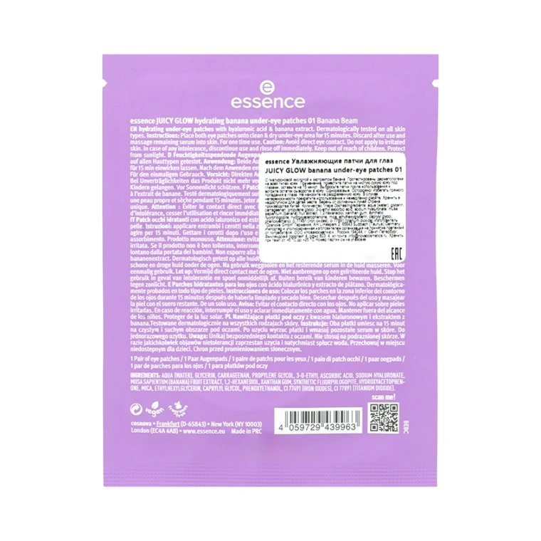 Увлажняющие банановые патчи для глаз JUICY GLOW с гиалуроновой кислотой и экстрактом банана обеспечивают коже вокруг глаз дополнительный уход и интенсивное увлажнение. Они прошли дерматологические испытания на коже всех типов, подходят для чувствительной кожи и обеспечивают «пробуждающий» эффект.