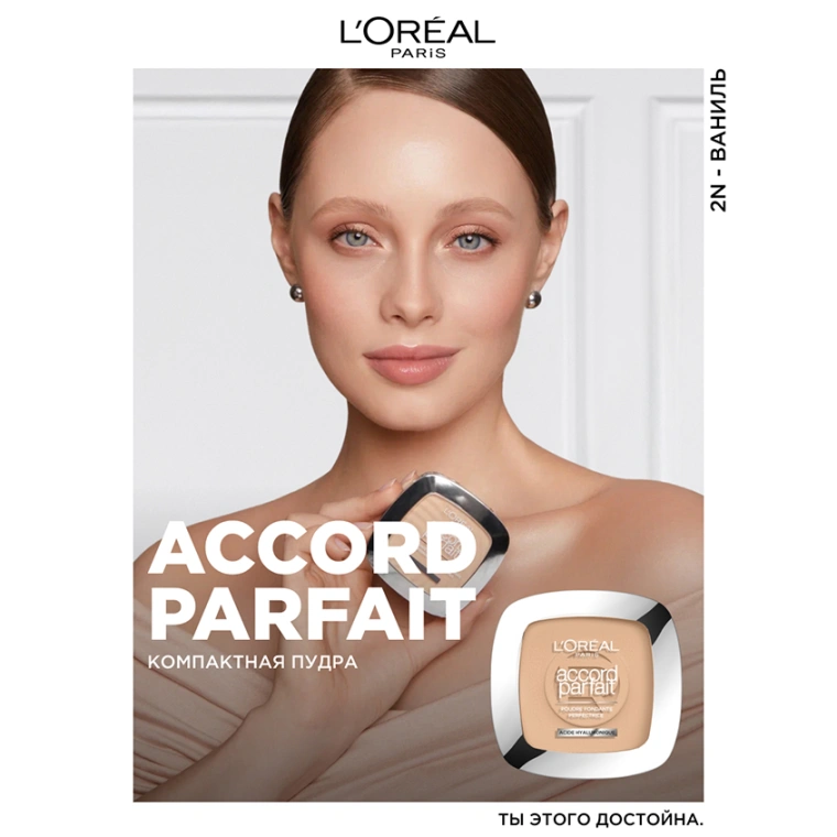 Пудра компактная для лица `LOREAL` ACCORD PARFAIT Совершенное слияние тон N2 (ванильный)