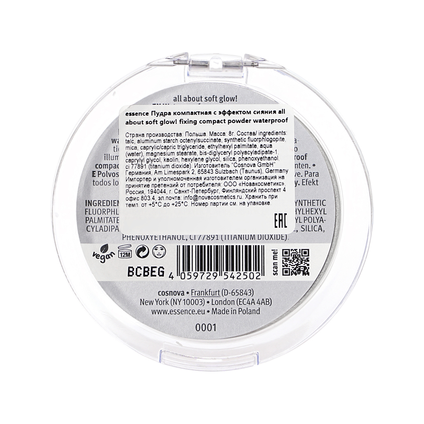 Пудра для лица `ESSENCE` ALL ABOUT SOFT GLOW! компактная с эффектом сияния