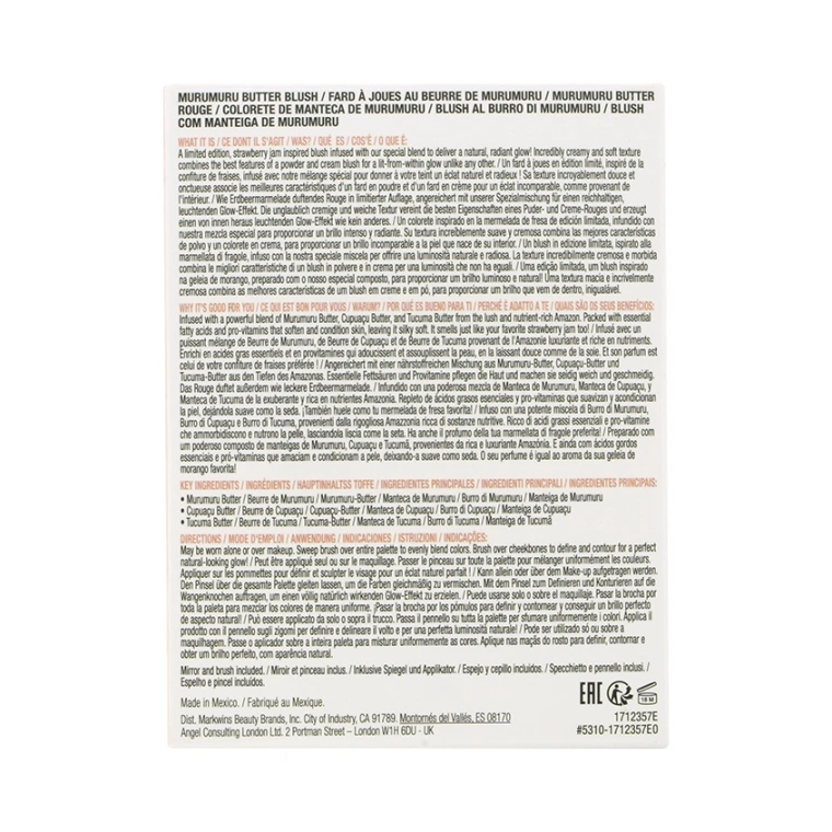 Клубничный румянец: с одного нанесения создают равномерный натуральный румянец с эффектом подсвеченной кожи изнутри, окутывая вас легким ароматом клубничного варенья. Питание и увлажнение: коктейль масел Мурумуру, Купуасу и Тукума увлажняет и питает кожу, делая ее мягкой и шелковистой. Легкое нанесение: независимо от способа нанесения, эти пудрово-кремовые румяна легко и равномерно распределяется по коже, обеспечивая стойкое покрытие на весь день.