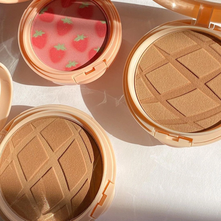 Нанесите румяна на лицо кистью для лица. Используйте румяна также в качестве теней, чтобы