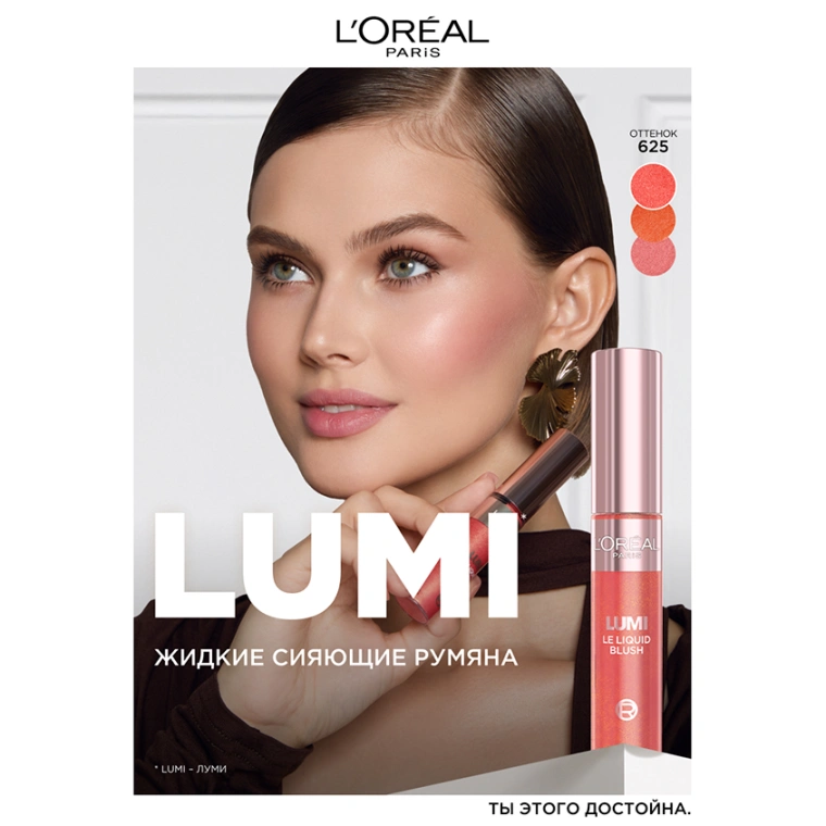 Жидкие сияющие румяна LUMI следует наносить кончиками пальцев/спонжем или кисточкой, легкими