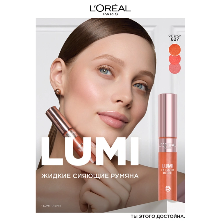 Жидкие сияющие румяна LUMI следует наносить кончиками пальцев/спонжем или кисточкой, легкими