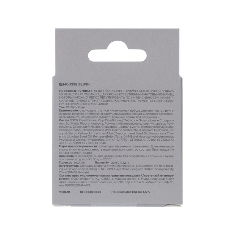 Румяна для лица `MIXIT` MOUSSE BLUSH пудровые тон 01