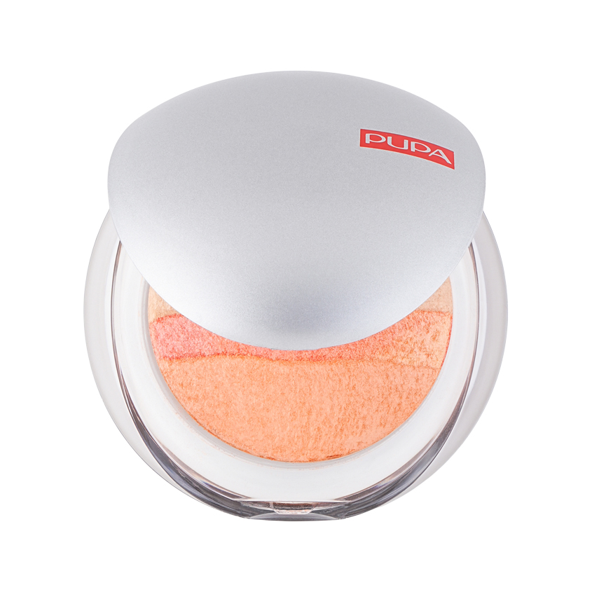 Румяна-пудра для лица `PUPA` LUMINYS BAKED ALL OVER со светоотражающими частицами тон 06 Coral stripes