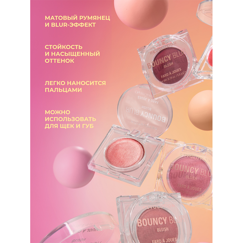 Румяна для лица `REVOLUTION` BOUNCY BLUR BLUSH тон Blurry rose