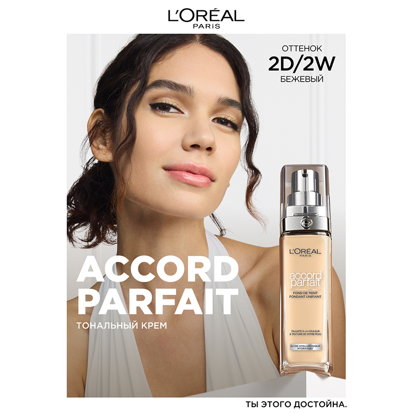 Крем тональный для лица `LOREAL` ACCORD PARFAIT тон 2.D/2.W (warm undertone)