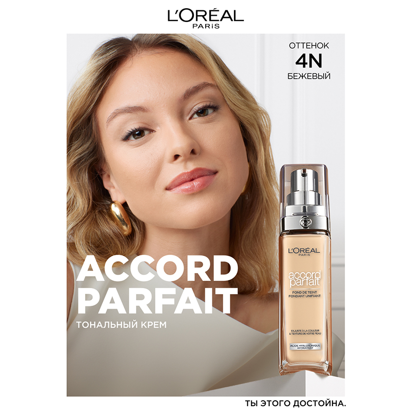 Крем тональный для лица `LOREAL` ACCORD PARFAIT тон 4.N (neutral undertone)