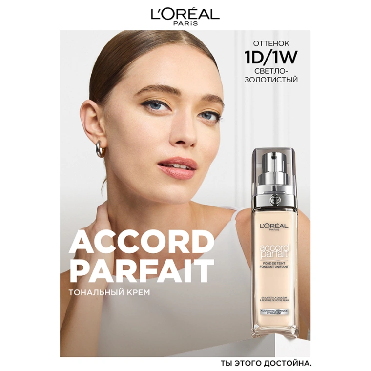 Крем тональный для лица `LOREAL` ACCORD PARFAIT тон 1.D/1.W (warm undertone)