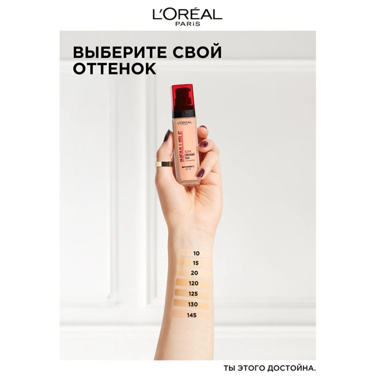 Тональный крем нового поколения INFAILLIBLE 32Ч СВЕЖИЙ ТОН дает лёгкий устойчивый результат с UV-защитой. Позволяет коже дышать, сохраняя стойкий результат в течение всего дня. Формула с добавлением ухаживающих компонентов: витамин Е и перламутровый пигмент. Больше стойкости, больше ухода. Будь INFAILLIBLE. Ведь ты этого достойна.