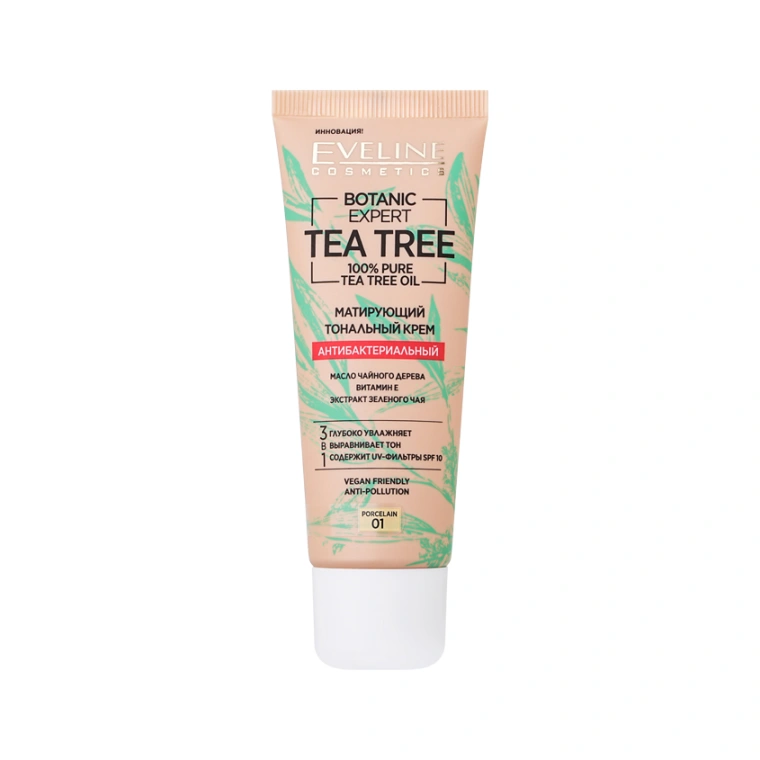 Матирующий тональный крем BOTANIC EXPERT TEA TREE придает коже сатиново-матовый финиш и гарантирует идеальный вид. Инновационная формула позволяет варьировать степень покрытия, скрывая несовершенства и покраснения. Крем не сушит кожу и не закупоривает поры. Содержащееся в тональной основе 100% натуральное масло чайного дерева обладает антисептическими и себрегулирующими свойствами, очищает поры и придает коже здоровый бодрый вид. В формуле тональной основы использован экстракт зеленого чая, который защищает кожу от воздействия свободных радикалов.