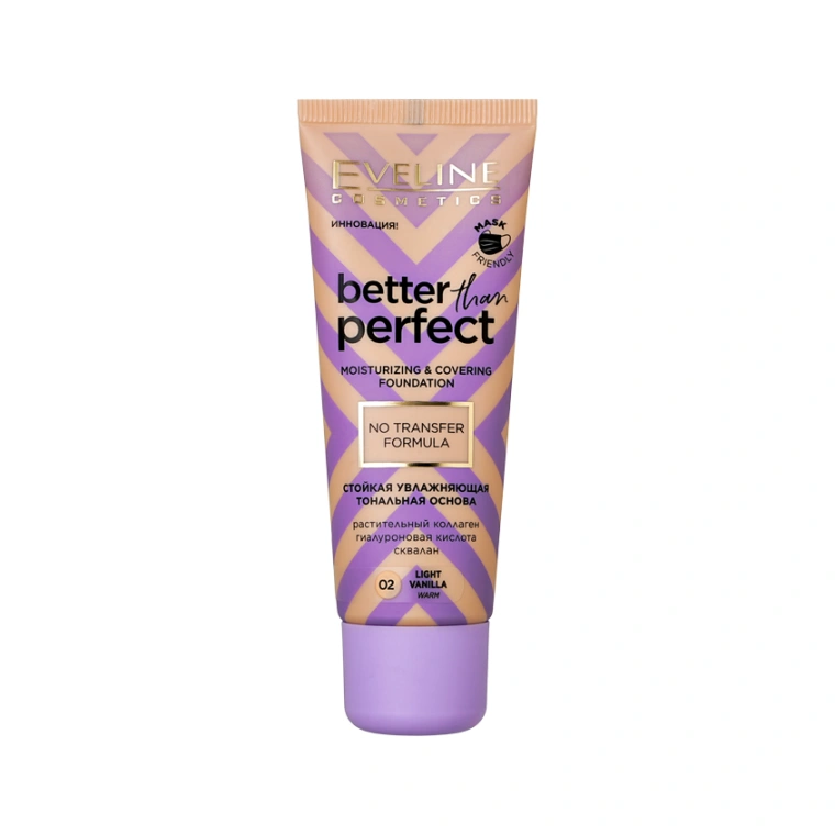 Основа тональная для лица `EVELINE` BETTER THAN PERFECT тон 02 light vanilla