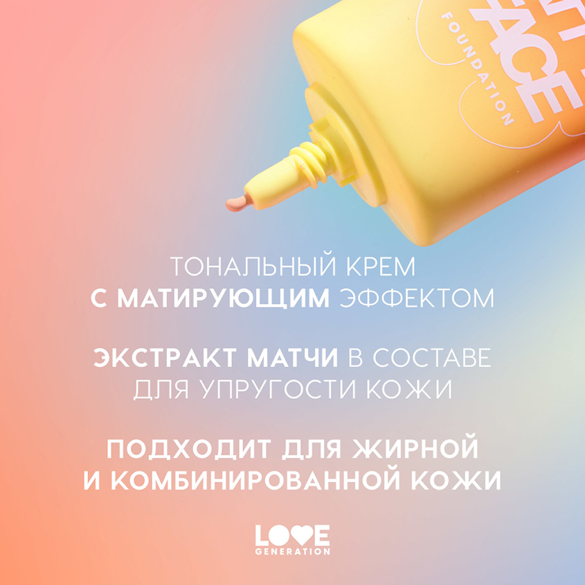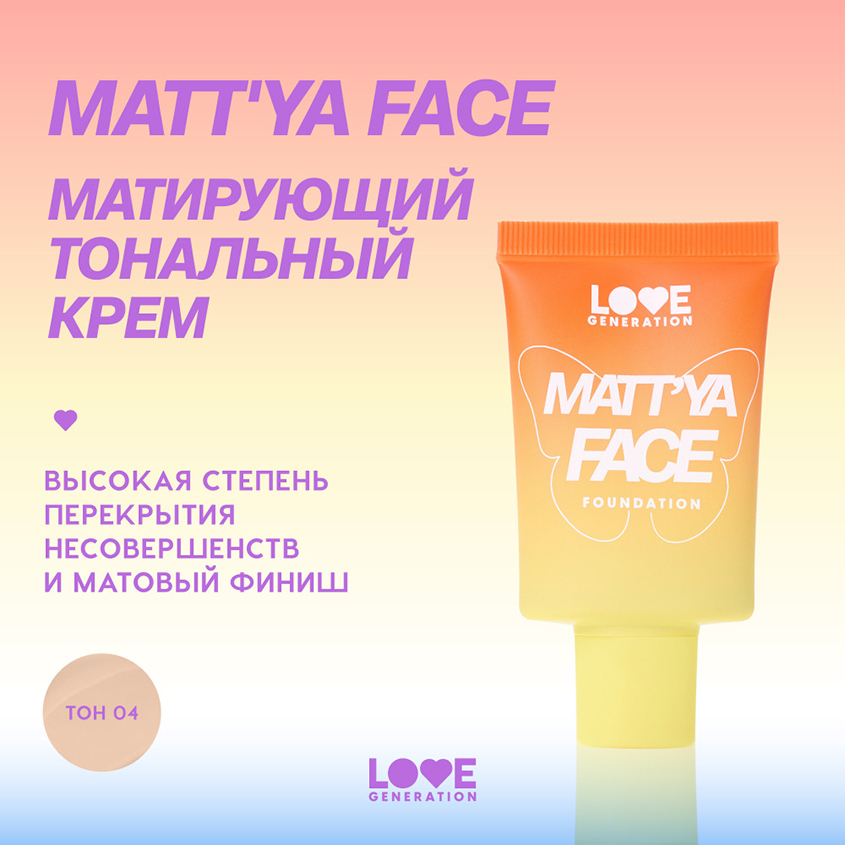 Крем тональный для лица `LOVE GENERATION` MATT`YA FACE матирующий с экстрактом матчи тон 02 Vanilla silk