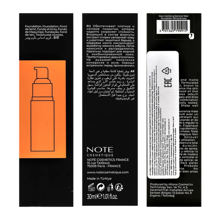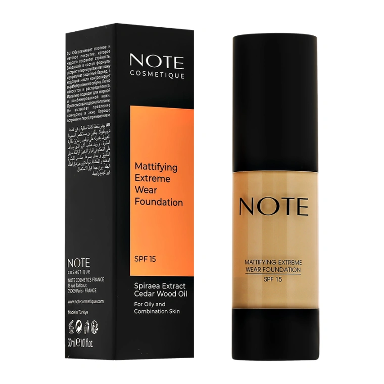 Основа тональная для лица `NOTE` MATTIFYING EXTREME WEAR с матирующим эффектом тон 128 Sand ivory