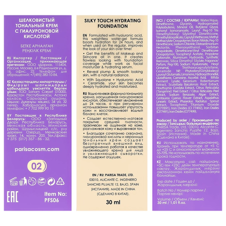 Крем тональный для лица `PARISA` SILKY TOUCH тон 02 Pink Porcelain