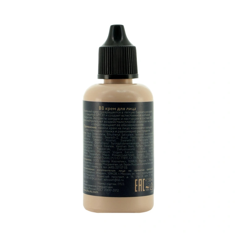 Тональный крем превращается в легкую бархатную вуаль с защитой SPF30 и создает естественным матовое покрытие. Экстракты шандры и настурции в составе ВВ крема нейтрализуют воздействия плохой экологии на кожу и предотвращают ее обезвоживание. Не тестируется на животных