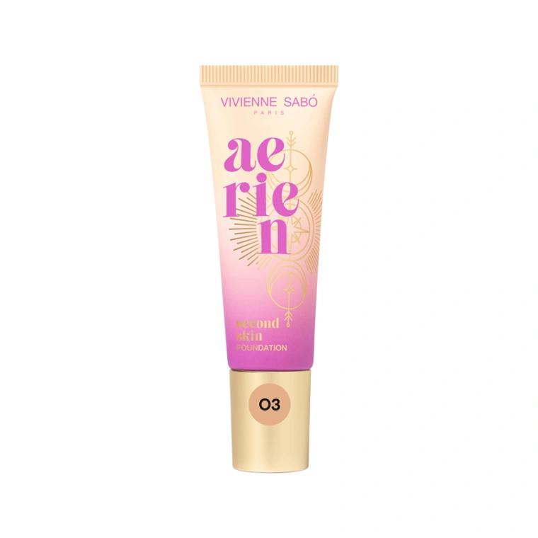 AERIEN — тональный крем от VIVIENNE SABÓ с естественным покрытием. Ультралегкий и воздушный, как утренний ветер в летнем Париже, он сливается с кожей и обеспечивает натуральный безупречный тон. AERIEN ложится на кожу, как нежный бриз, овевающий твое лицо во время прогулки вдоль Елисейских полей, улучшает и выравнивает тон, скрывает несовершенства и создает покрытие от легкого до среднего с натурально-атласным финишем. Полупрозрачная вуаль крема деликатно рассеивает свет и придает сияние. Тональный крем в трех натуральных оттенках упакован в тубу с матовым покрытием и золотистым орнаментом, символизирующим одну из стихий. AERIEN не забивает поры и не вызывает ощущения тяжести на коже. Подобно прогулке по Монмартру, образ с тональным кремом от VIVIENNE SABÓ окутывает аурой элегантности и утонченности.