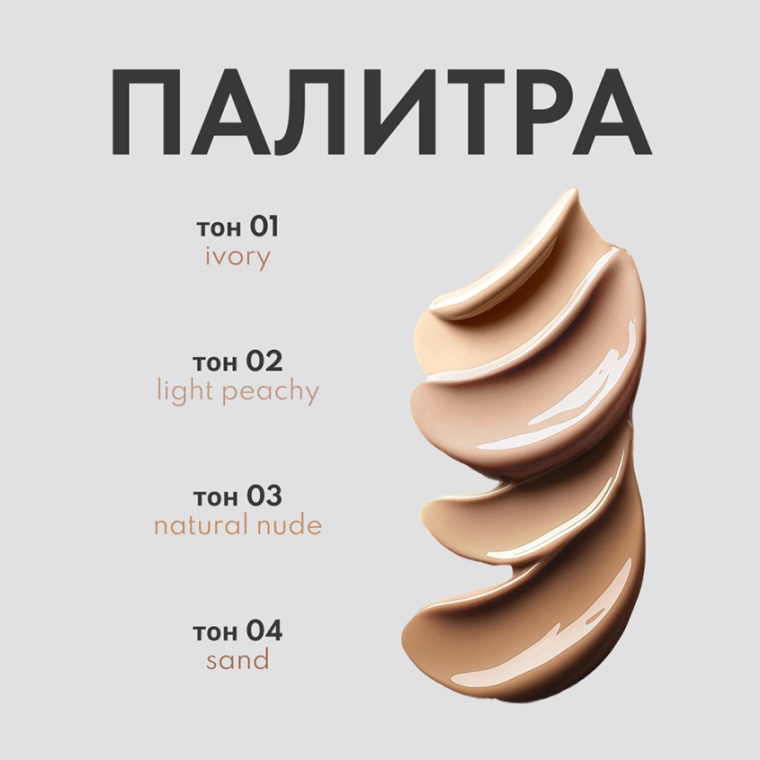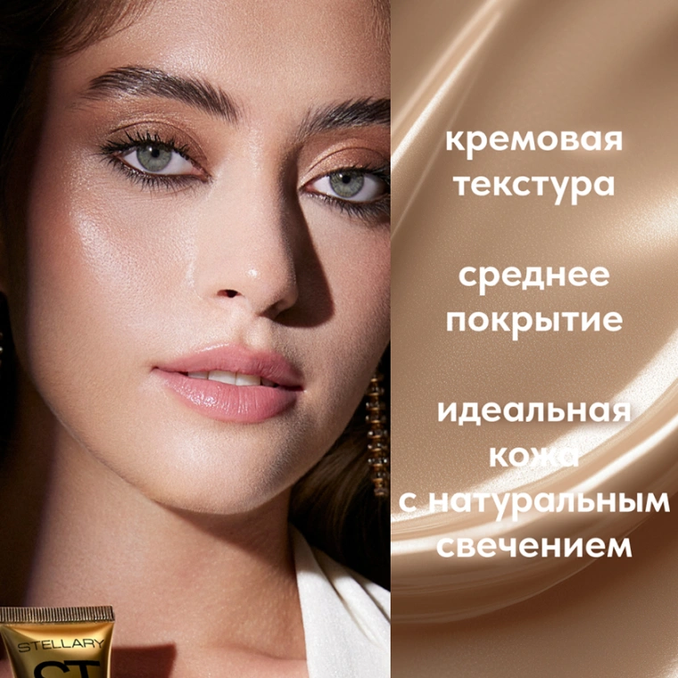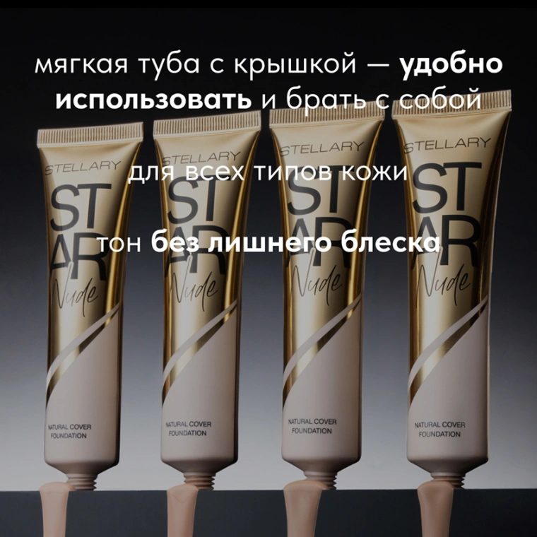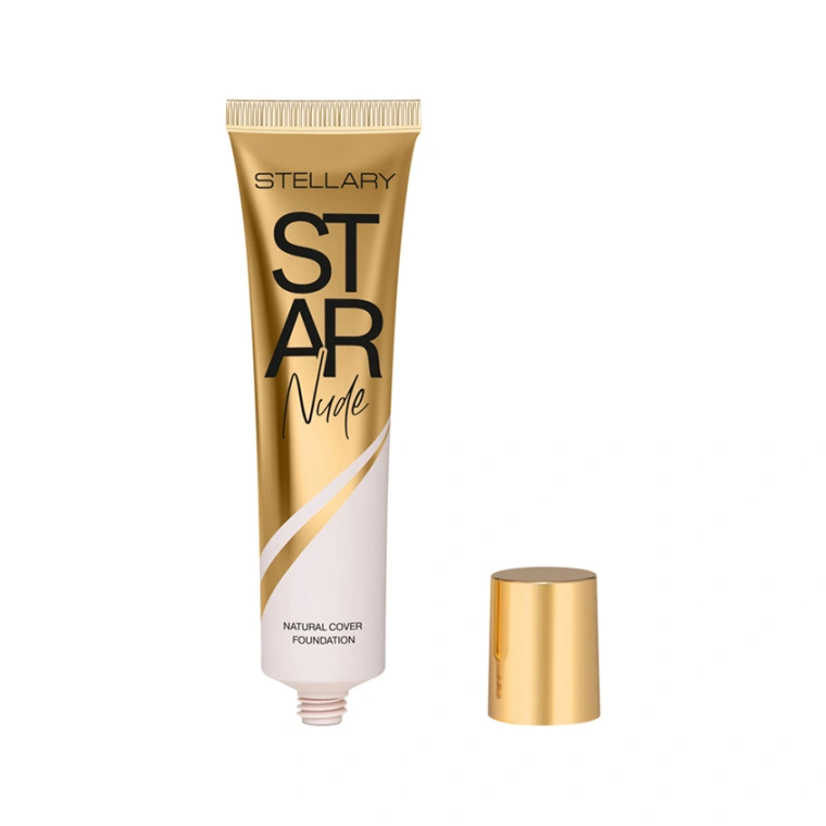 Универсальный тональный крем STAR NUDE с натуральным сатиновым финишем и средней укрывистостью — роскошная база, доступная каждой. Это прочная основа для создания макияжа с идеально ровным тоном кожи без несовершенств и лишнего блеска. Продукт с кремовой текстурой придает коже естественный ухоженный вид с легким натуральным свечением. Эффект выравнивания кожи достигается за счет текстуры со средним покрытием. STAR NUDE представлен в четырех оттенках: 01 слоновая кость, 02 светло-персиковый, 03 натуральный бежевый, 04 песочный. Тональный крем упакован в мягкую тубу с крышкой с запоминающимся дизайном и золотыми глянцевыми деталями.