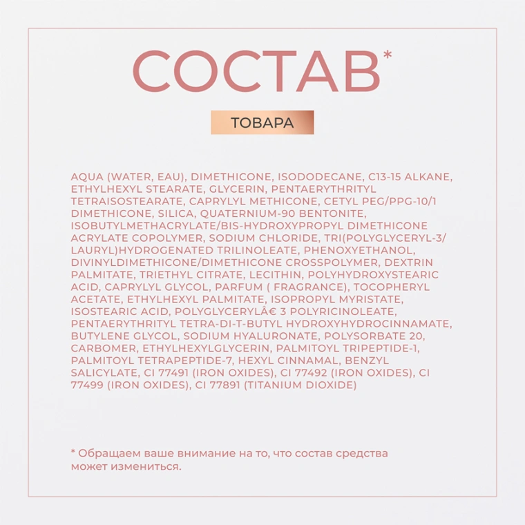 • Легкая, «дышащая» формула обеспечивает покрытие, подстраивающееся под тон кожи;