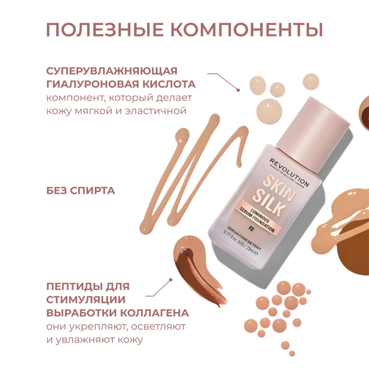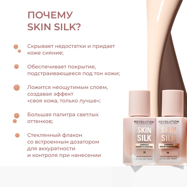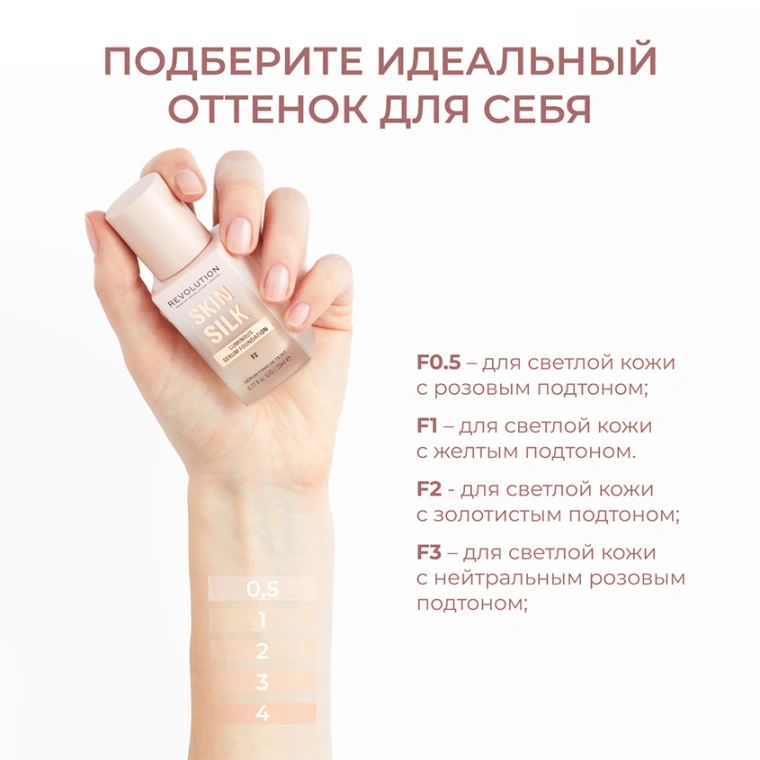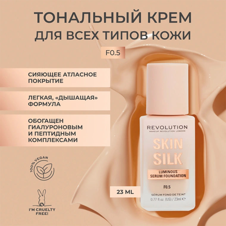 Основа тональная для лица `REVOLUTION` SKIN SILK Luminous Serum Foundation тон F0.5