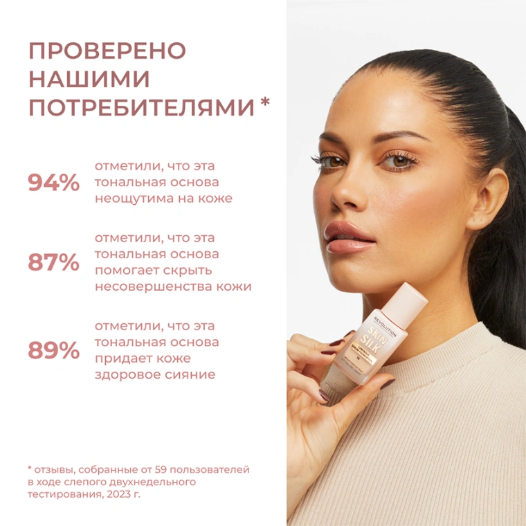 94%* согласились, что эта тональная основа неощутима на коже;