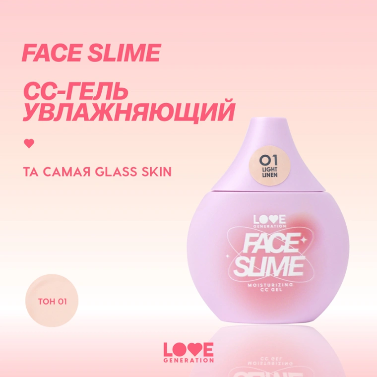 CC-гель для лица `LOVE GENERATION` FACE SLIME увлажняющий тон 01 Light linen
