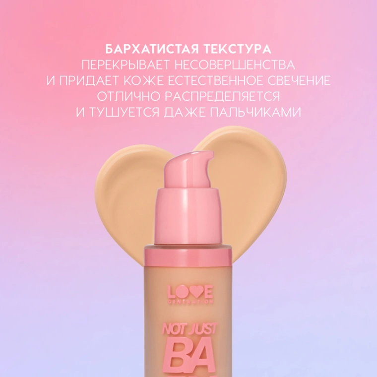 Каждая девушка имеет богатый внутренний мир, который важнее, чем приятное личико. Тональный крем NOT JUST BABY FACE, как и ты: красивый не только снаружи, но и внутри! Он покорит тебя нежным оформлением стеклянного матового флакона, а также потрясающей бархатистой текстурой, которая отлично распределяется и тушуется даже пальчиками! Благодаря легким эмолентам в составе крем не оставляет ощущение маски. Удобный дозатор-помпа позволяет набрать столько продукта, сколько нужно, а розовое сердечко будет повышать настроение во время каждого макияжа. Стойкий крем с высокой степенью покрытия не стирается в течение дня и подходит для ежедневного нанесения. Эффект сияния кожи изнутри подчеркнет ее свежесть и молодость — baby face тебе обеспечен! Осталось забрать тональный крем в свою любимую косметичку, ведь он подойдет как для рабочих будней, так и для вечеринок. Попробуй наслоить его немножко больше, и он перекроет все проблемные участки кожи. Хотя мы уверены, что ты совершенна!