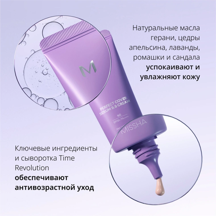 Тональный BB-крем для лица `MISSHA` PERFECT COVER SERUM антивозрастной для сияния кожи тон 23 Natural beige 20 мл