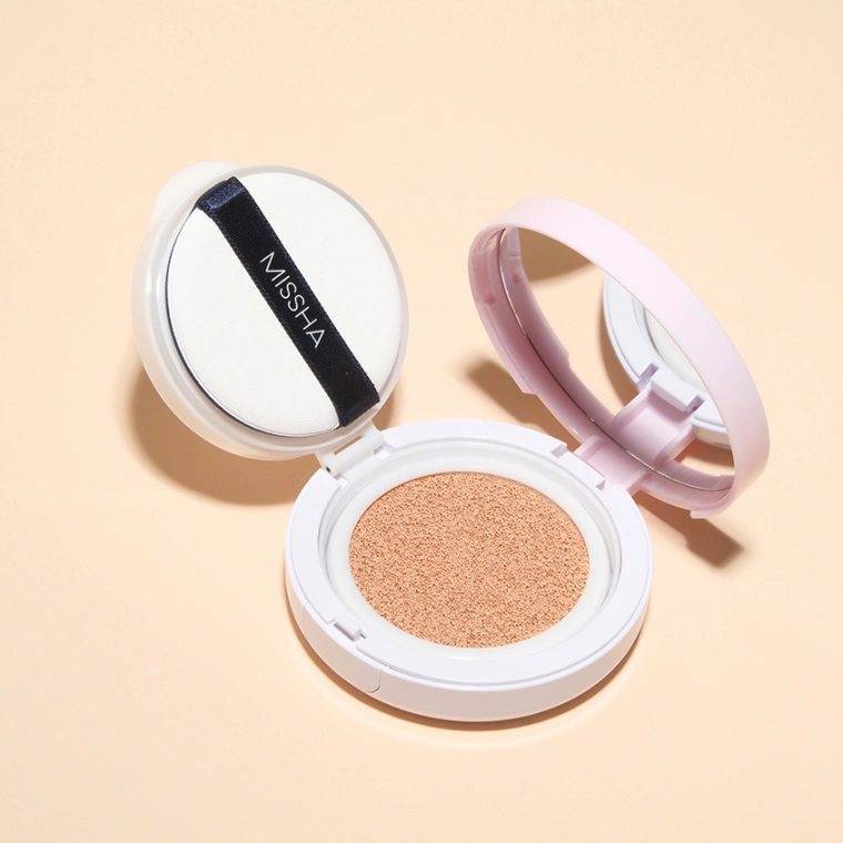 Тональная основа-кушон MISSHA – компактное стойкое тональное средство, которое всегда с собой. Кушон – это содержащий тональное средство спонж, который обеспечивает равномерное нанесение и экономичное дозирование косметического средства. Идеально подходит для коррекции макияжа в течение дня и легко поместится даже в маленькой сумочке. Благодаря тающей шелковистой текстуре тональное средство ложится на кожу тонкой вуалью, эффективно перекрывая тёмные круги под глазами, покраснения, пигментные пятна и следы от прыщей. Не создаёт ощущения маски, не закупоривает поры и не забивается в складки кожи. Может использоваться в качестве консилера.