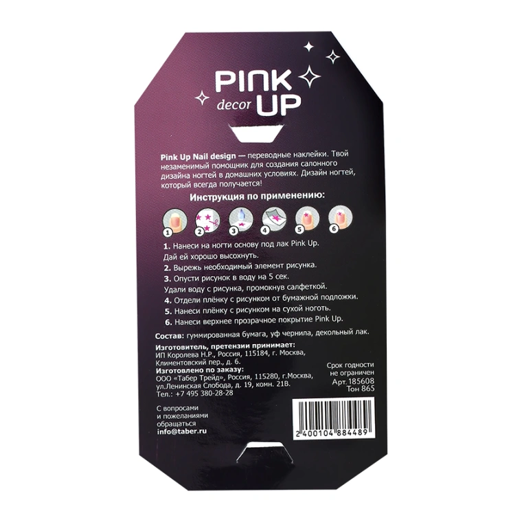 Переводные наклейки для ногтей PINK UP DECOR Mystic Collection 2D на водной основе, тон 865. PINK UP Nail Design — незаменимый помощник для создания салонного маникюра в домашних условиях. Дизайн ногтей водными наклейками, который всегда получается!