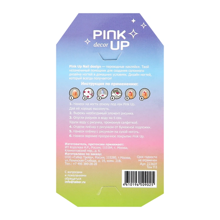 PINK UP − это профессиональный бренд лаков для ногтей, аксессуаров и средств по уходу за ногтями. Вдохновение и творчество положили начало к развитию этого модного бренда более 10 лет назад. Использование инновационных технологий в производстве и безопасных натуральных ингредиентов делают продукты бренда PINK UP безвредными для здоровья человека и окружающей среды. Продукция бренда PINK UP не тестируется на животных.