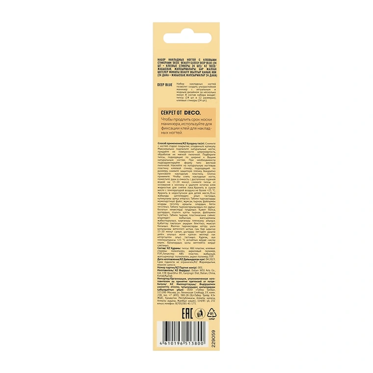 типсы: АБС-пластик; клеевые стикеры: полиэтилен, акриловый полимер, ПЭТ. Срок годности не ограничен.