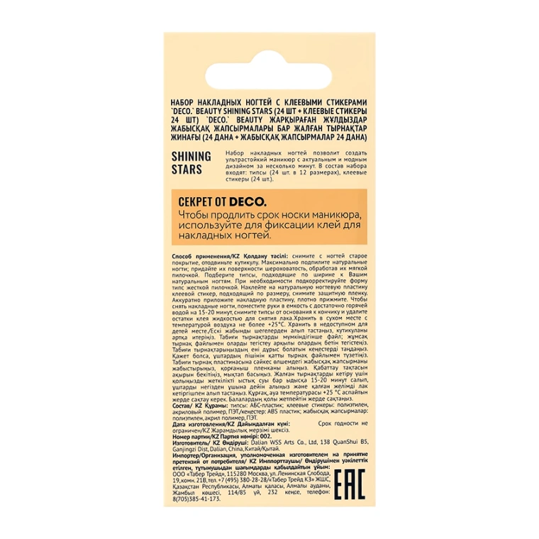Набор накладных ногтей с клеевыми стикерами `DECO.` BEAUTY shining stars (24 шт + клеевые стикеры 24 шт)