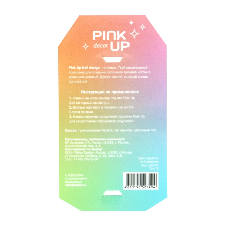 PINK UP − это профессиональный бренд лаков для ногтей, аксессуаров и средств по уходу за ногтями. Вдохновение и творчество положили начало к развитию этого модного бренда более 10 лет назад. Использование инновационных технологий в производстве и безопасных натуральных ингредиентов делают продукты бренда PINK UP безвредными для здоровья человека и окружающей среды. Продукция бренда PINK UP не тестируется на животных.