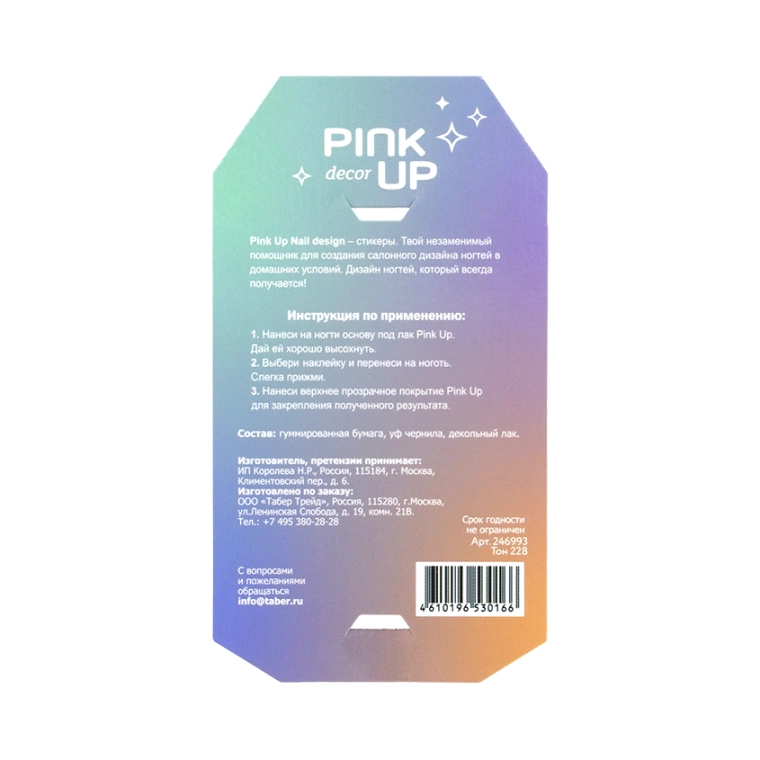 PINK UP − это профессиональный бренд лаков для ногтей, аксессуаров и средств по уходу за ногтями. Вдохновение и творчество положили начало к развитию этого модного бренда более 10 лет назад. Использование инновационных технологий в производстве и безопасных натуральных ингредиентов делают продукты бренда PINK UP безвредными для здоровья человека и окружающей среды. Продукция бренда PINK UP не тестируется на животных.