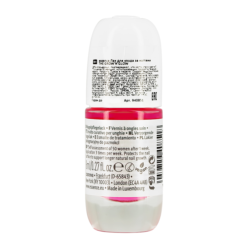 Длинные, ухоженные ногти без сколов: Ухаживающий лак для ногтей GROWN'N'GLOW питает и защищает ногти, а также способствует их естественному росту. В то же время, лак обеспечивает великолепное естественное покрытие благодаря прозрачной светло-розовой текстуре. Стойкий блестящий финиш.