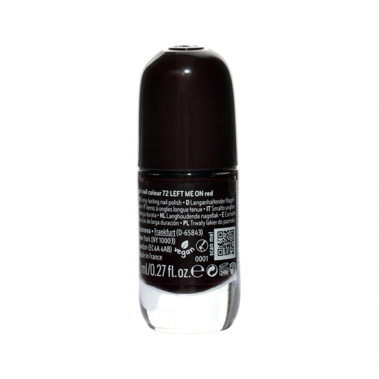 Ты можешь легко наносить его на ногти благодаря запатентованной широкой кисточке с двойным касанием. Кроме того, этот красочный лак для ногтей высыхает очень быстро - всего за 40 секунд. Стойкий гелевый финиш не оставляет никого равнодушным - и все это в веганской, "чистой" формуле и без частиц микропластика!