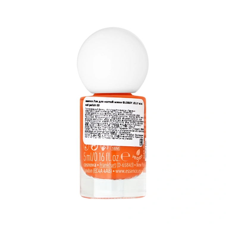 Лак для ногтей `ESSENCE` GLOSSY JELLY мини с полупрозрачным финишем тон 03 Bright orange