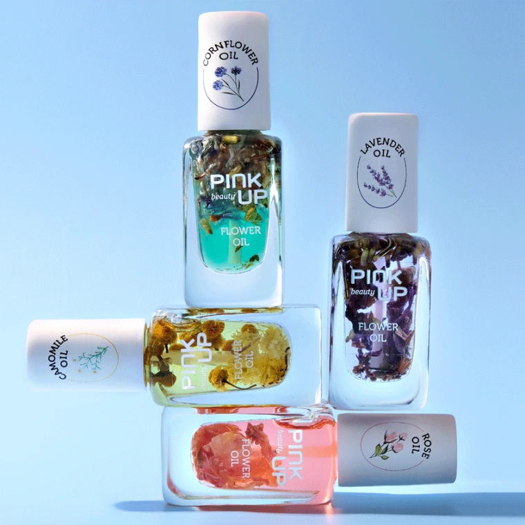 Ухаживающие средства с натуральными экстрактами из линейки PINK UP BEAUTY, состоящие из лечебных, базовых, верхних покрытий, масел для ногтей, кремов и карандашей- уходов, бережно поддерживают красоту и здоровье ногтей.